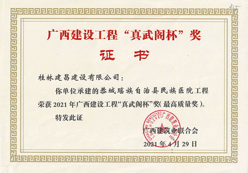 近日,2021年度廣西建設(shè)工程最高質(zhì)量獎——真武閣杯獎評選結(jié)果揭曉。桂林建昌建設(shè)有限公司承建的恭城瑤族自治縣民族醫(yī)院和智慧養(yǎng)生城(瑤漢養(yǎng)壽城)1#、2#、3#、4#樓工程獲此殊榮。